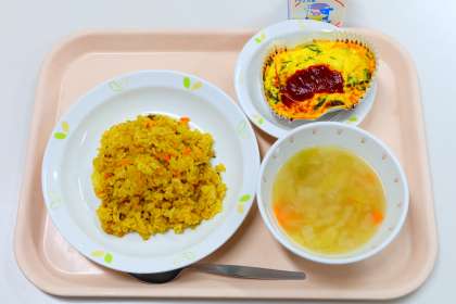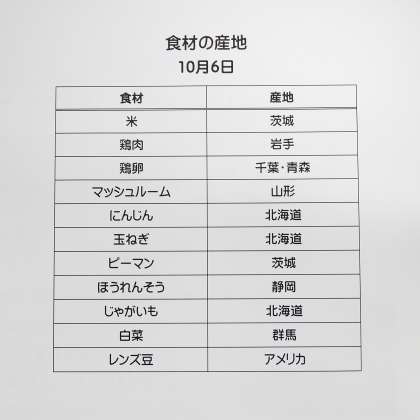 10月6日(木)の給食 公開日 2022/10/06 更新日 2022/10/06 給食 《今日の献立》 ・ツナピラフ ・チーズのオムレツ ・レンズ豆と野菜のスープ ・牛乳 3枚目: 3年生から給食室へのメッセージです。 いいね(0) 給食