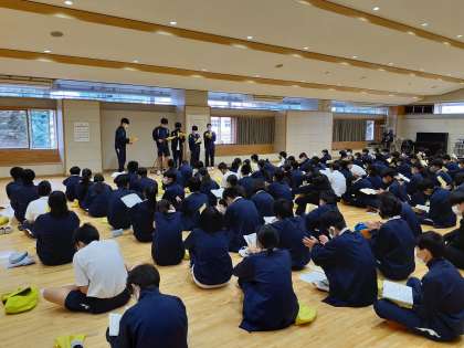 いよいよ最初で最後の修学旅行が10日から始まります。今日は前日の学年集会でした。しっかりやってよい思い出をつくりましょう。