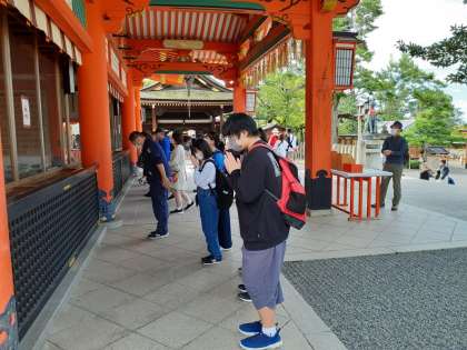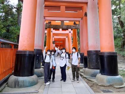 京都はさわやかな秋晴れです。少し暑くなってきました。人気の見学地の一つが伏見稲荷です。お参りをしたり、千本鳥居を通ったり、おみくじを引いたりと楽しんでいます。
