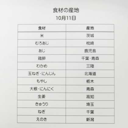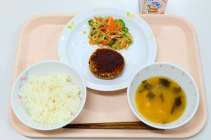 《今日の献立》 ・ごはん ・むろあじのメンチカツ ・糸寒天サラダ ・みそ汁 ・牛乳