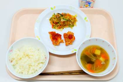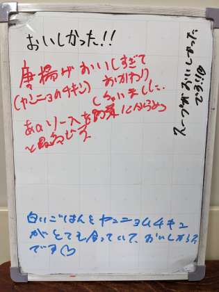 11月30日(水)の給食 公開日 2022/11/30 更新日 2022/11/30 給食 《今日の献立》 ・ごはん ・ヤンニョムチキン ・チャプチェ ・わかめスープ ・牛乳 写真3枚目: 3年生の感想の寄せ書きです。 いいね(0) 給食