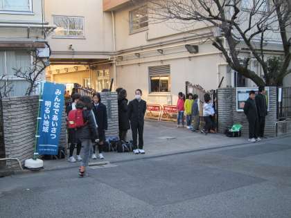 寒さの厳しい中、お互い、元気よくあいさつを交わしていました。