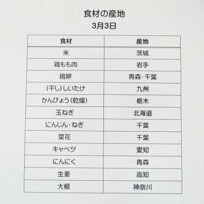 《今日の献立》 ・菜花ずし 手巻きのり ・鶏肉と野菜の香味焼き ・お麩のみそ汁 ・牛乳