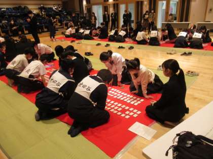 世田谷区百人一首大会 公開日 2023/03/06 更新日 2023/03/06 できごと 3年間開催できなかった区百人一首大会が行われました。前回優勝の本校から優勝カップの返還があり、その後ハイレベルな戦いが繰り広げられました。 いいね(0) 学校生活