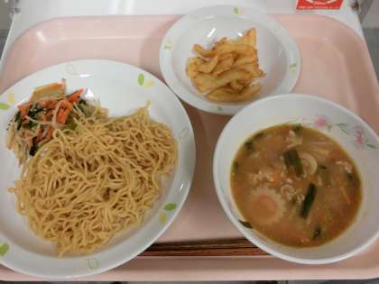 ≪今日の給食≫ みそラーメン ナムル スパイシーポテト 牛乳