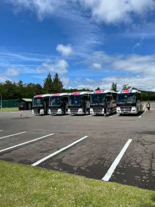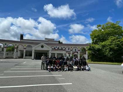 緑の休暇村に到着しました。集合写真を撮って、これからオリエンテーリングがスタートします。
