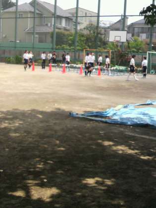 5月29日(火)3校時 保健体育科の教育実習の先生の研究授業が行われています。みんな真剣にハードルの練習に取り組んでいます。
