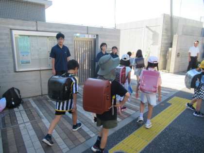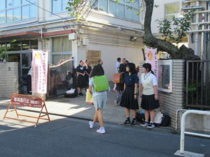 毎学期、最初の1週間は学び舎のあいさつ運動で始まります。2学期からは1年生も参加しています。