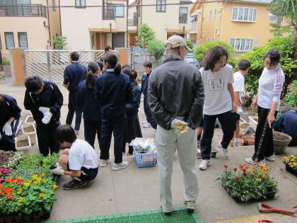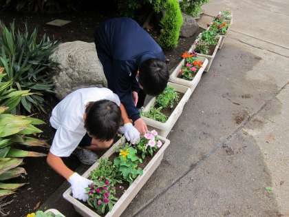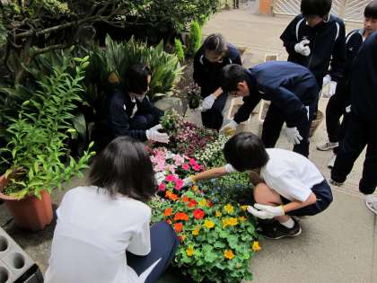 園芸部・奉仕活動部・美化委員会が中心となって、校内に花を植えました。