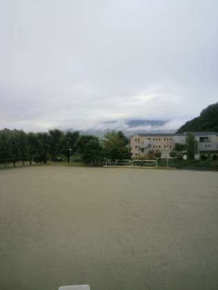 今日の富士山です。雲に隠れて、まるで見えません。雨はやんだようです。