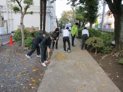 落葉がたくさんある中、一生懸命掃除をしていました。