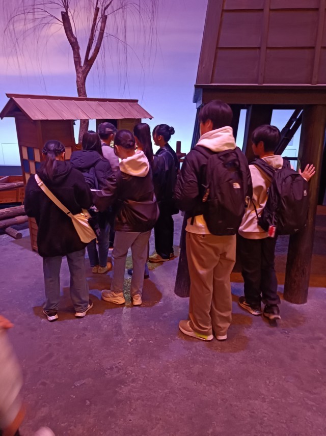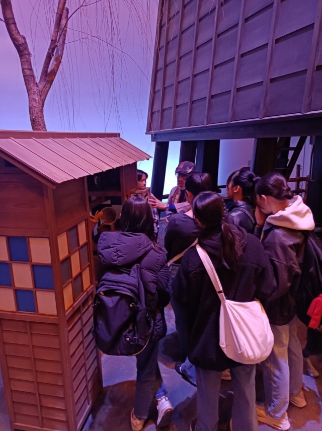 A組5班、C組5班深川江戸資料館見学中です。ガイドの方のお話を聞いています。