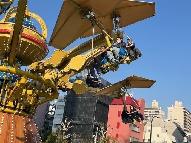 コズミックトラベラーというアトラクションです。グライダーが回転して上下に動きます。かなりのスピードで回っていました。直後にデザートタイムとなり、アイスクリームなどを思い思いに買って食べていました。みんな元気です。