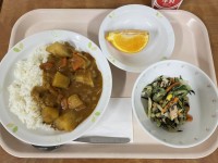《今日の給食》チキンカレーライスひじきのピリッっとサラダ不知火牛乳