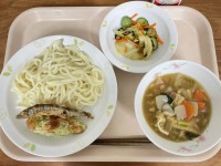《今日の給食》あんかけうどんししゃもの天ぷら笹かまぼこの磯辺揚げキャベツの塩昆布...