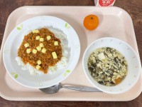《今日の給食》タコライスもずくのたまごスープ冷凍みかん牛乳