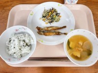 《今日の給食》わかめごはんししゃもの南蛮漬けひじきのピリッとサラダみそ汁牛乳