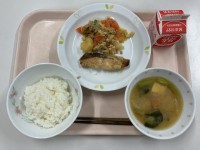 ごはん 鰆の西京焼き 新じゃがのそぼろ煮 みそ汁 牛乳