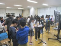 4年生の音楽です。「エーデルワイス」のハンドベルの合奏を行っていました。先生の伴...