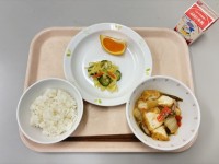 【3月2日の給食】*ご飯*家常豆腐*中華サラダ*果物(清見)※柑橘*牛乳