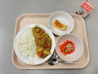 【3月4日の給食】『有機野菜の日』*チキンカレーライス*キャロットラペ*果物(市...