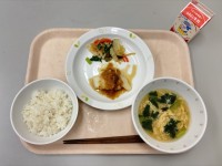 【3月9日の給食】*ご飯*油淋魚*大根と昆布の中華サラダ*わかめスープ*牛乳