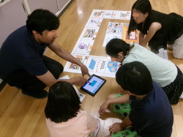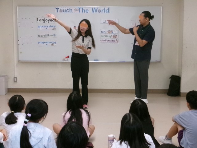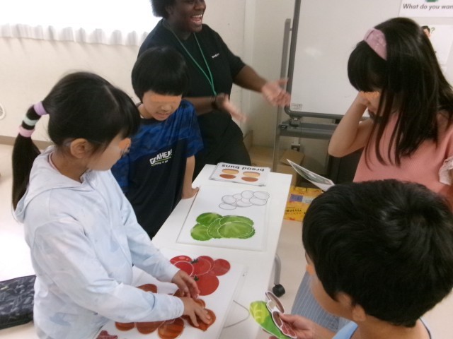 グループに一人のALTが入り、それぞれの体験場所を回りました。ALTからの質問にも