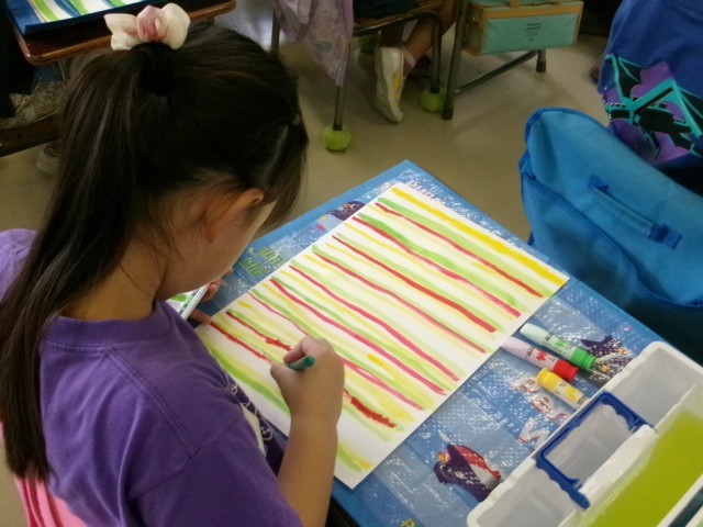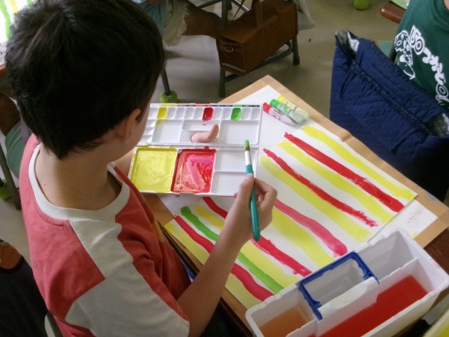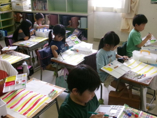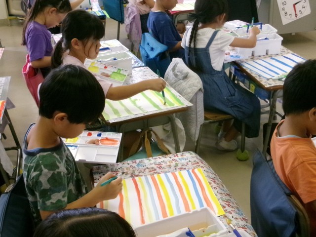 自分の考えた色の組み合わせを筆で上手に書き、みんな集中して取り組んでいました。