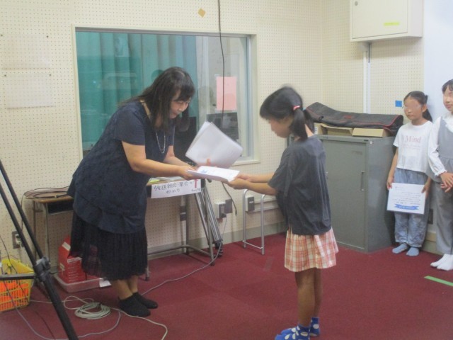今日の朝会では、ハローキャリアワーク体験をした子どもたちが、校長先生から修了書を渡されました。