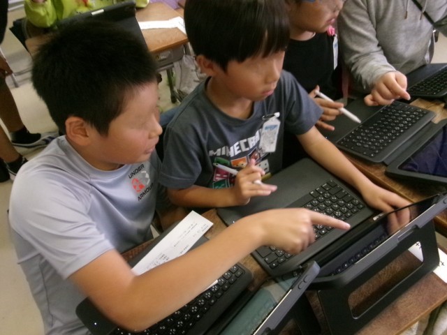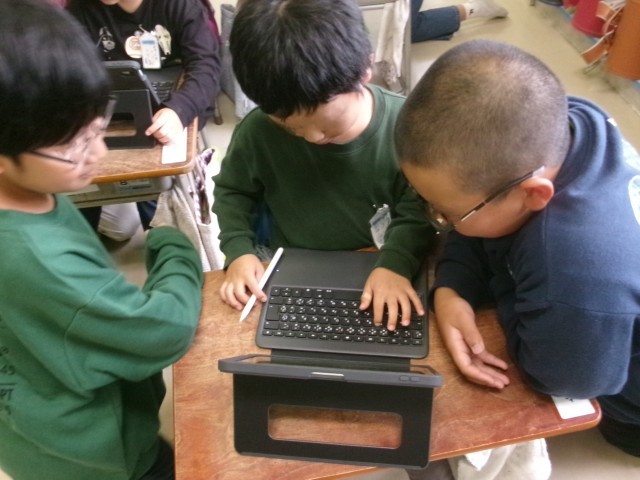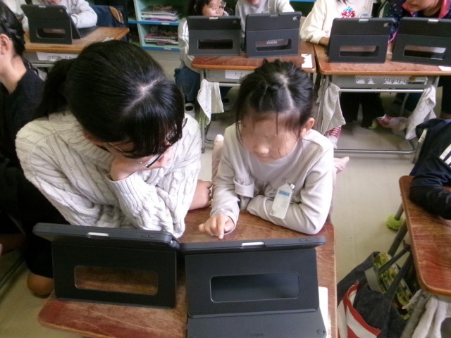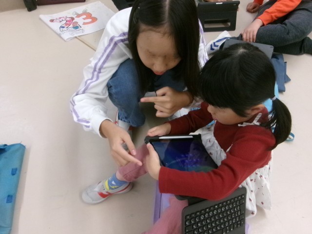 今日は、6年生が1年生にタブレットの使い方を教える「タブレット先生」が行われました。