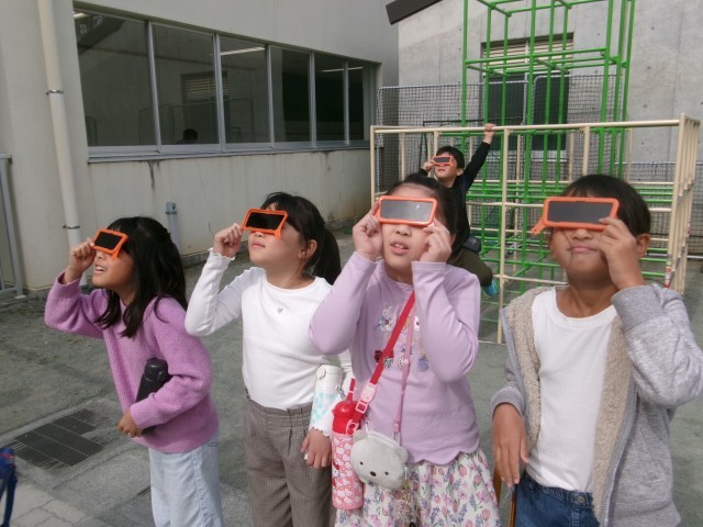 「緑に見える。」「雲が動いてる。」「先生、見て!見て!」とみんな大はしゃぎでした。