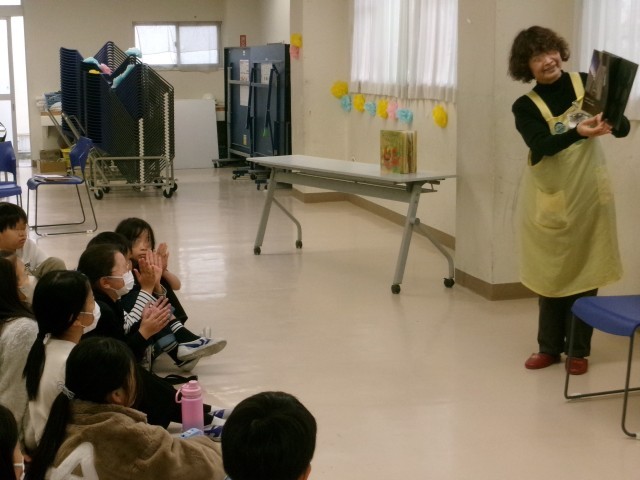 5作品のい絵本のうち2作品は、語りのみによるものでした。子どもたちは、