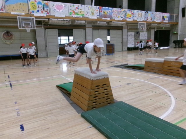 少しでも高く跳ぼうと助走や手を付く場所を工夫しながら取り組んでいました。