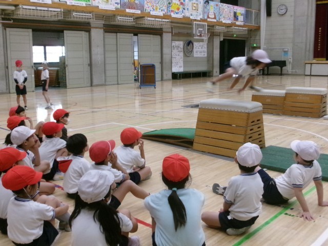 上手に跳ぶ友達に「跳んでみて。」と跳び方を学ぶ友達も多く、積極的にチャレンジしていました。