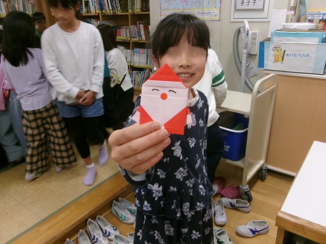 最後には、サンタクロースの折り紙のプレゼントをもらいました。