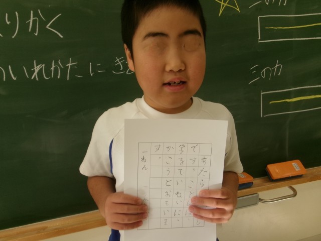 みのり学級では、低学年の友達が硬筆で作品を仕上げて見せてくれました。