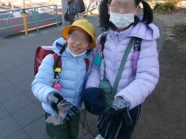 今朝は、-2℃まで冷え込み、登校してくる子どもたちも、あちこちで