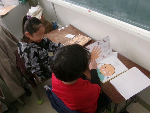 今日は、1年生の国語の授業を見にいきました。「スリーヒントで本をあてろ!」