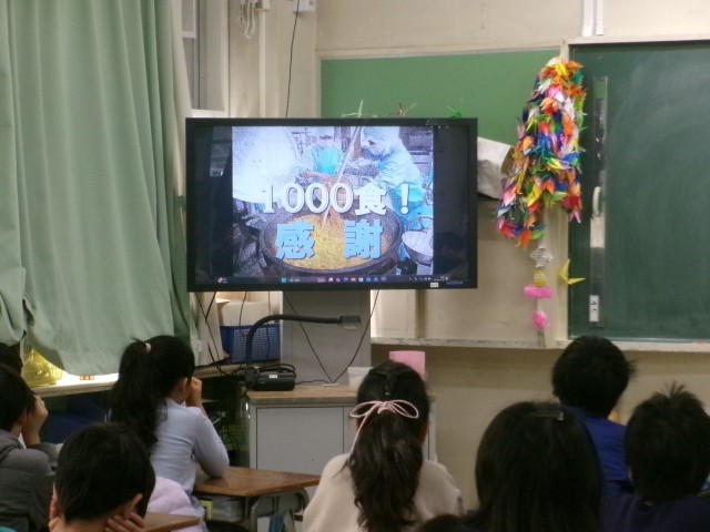 塚戸小では、1000食もの給食を作るため、給食調理員さんたち