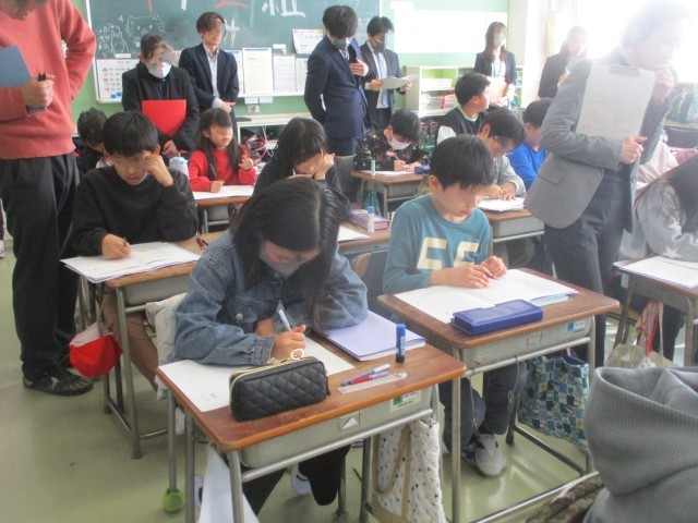 今日は、1年と4年のクラスで研究授業が行われました。