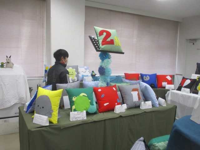 家庭科室では、5年生は「何でもストック」、6年生は、クッションを展示していました。