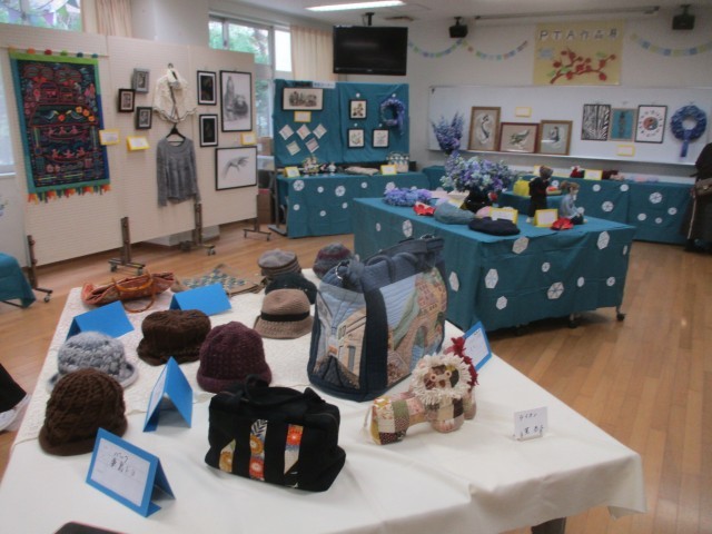 図工の作品と家庭科の作品、地域の方の作品の展覧会です。