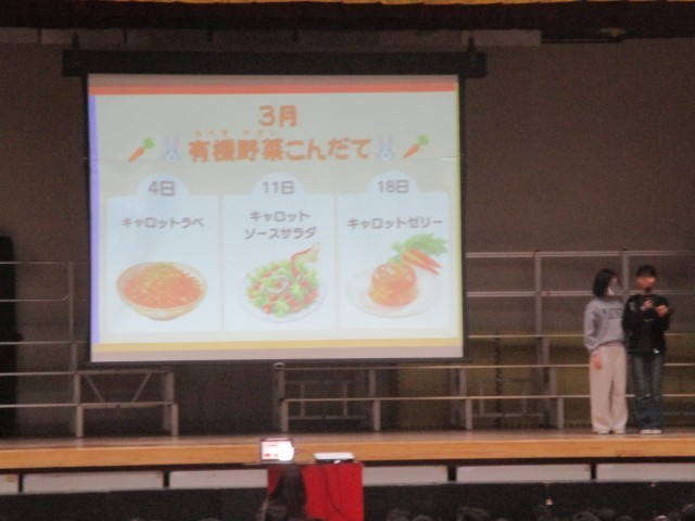 また、三月の献立紹介も行い、給食への関心をより一層高める機会となりました。