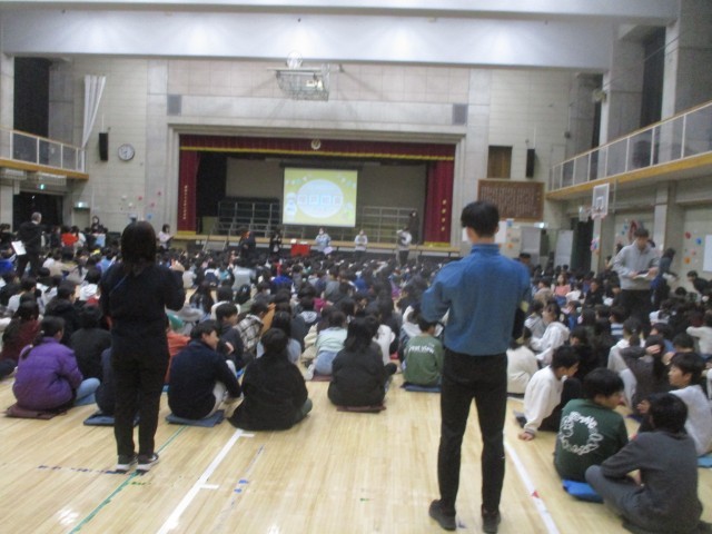 子どもたちが体で〇や✕を表しながら楽しく参加し、会場が一体となって