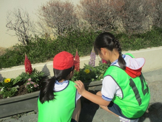 一気に春らしさを感じ、色とりどりの花が塚戸小を明るくしてくれました。