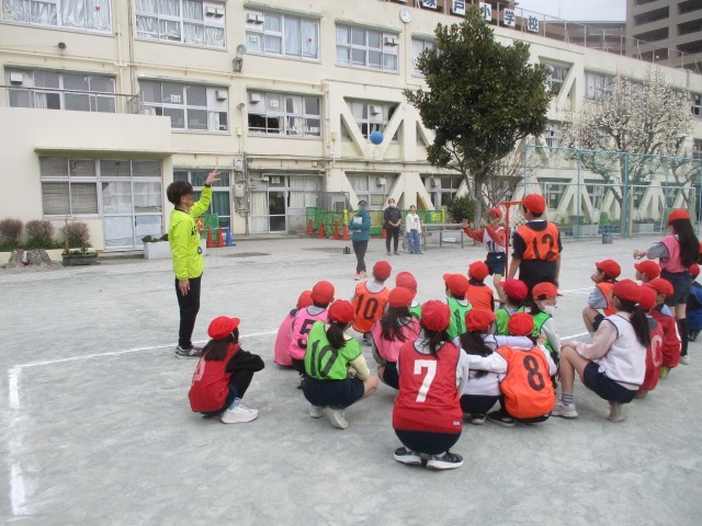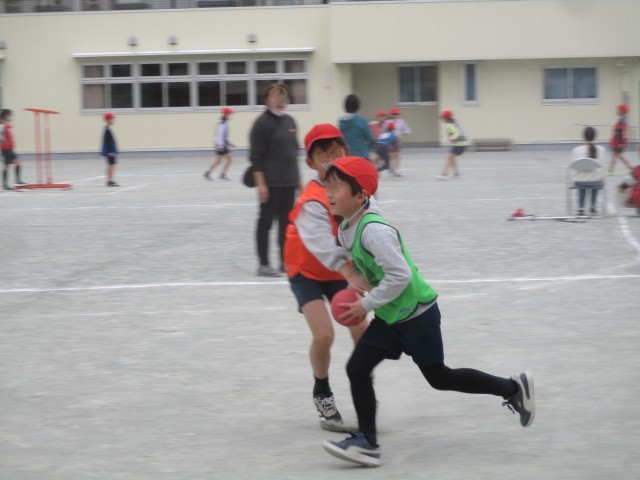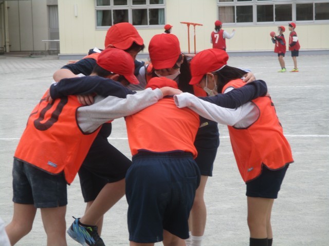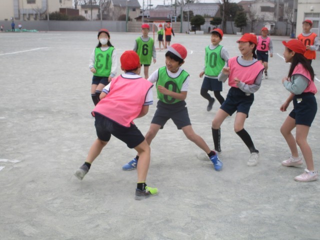 空いている空間を友だちに教えるために声をかけたり、得点につながる動きを工夫してゲームを行いました。