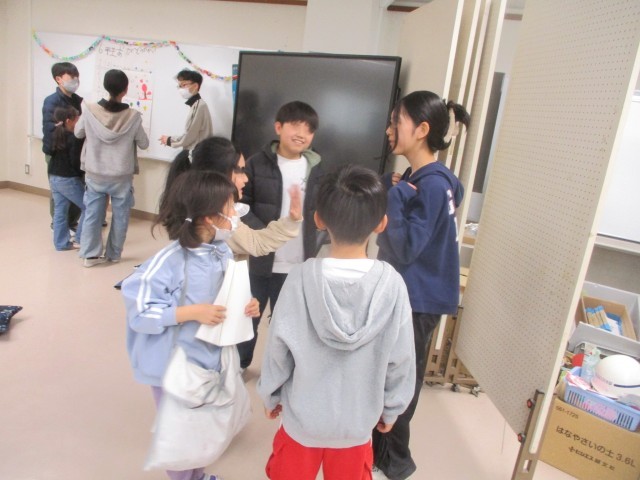1年生が6年生に1年間の感謝を伝える会を企画し、6年生も出し物を話し合って合同集会が