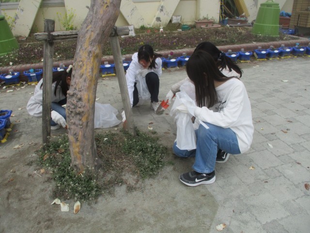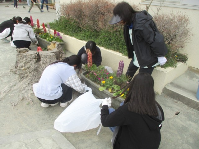 企画を立て、校内の掃除や雑草の除草作業を行いました。