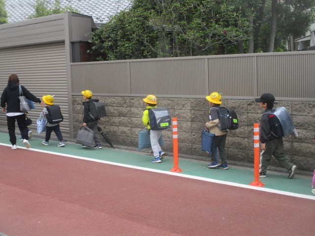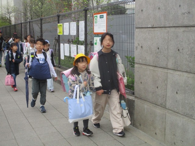 高学年のお兄さん、お姉さんと手をつないで登校する姿が見られました。