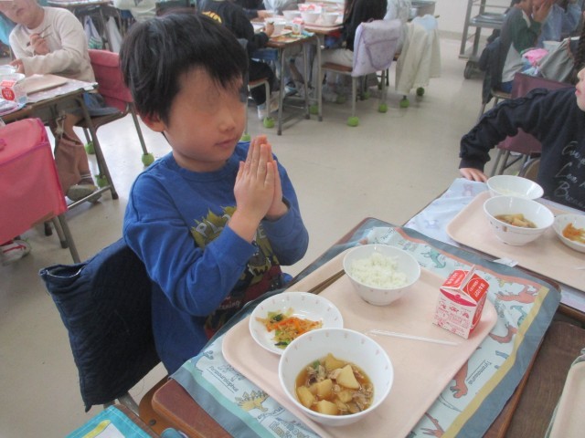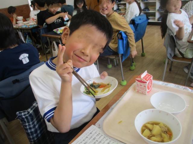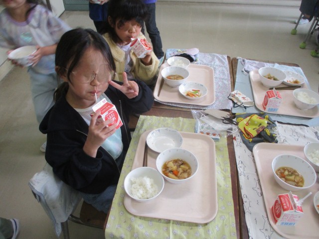 おいしい給食が始まり、みんな楽しそうでした。